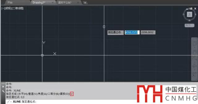 出現(xiàn)上述提示后,輸入H,回車,可以繪制水平的構(gòu)造線。軟件會(huì)提示:指定通過點(diǎn)。