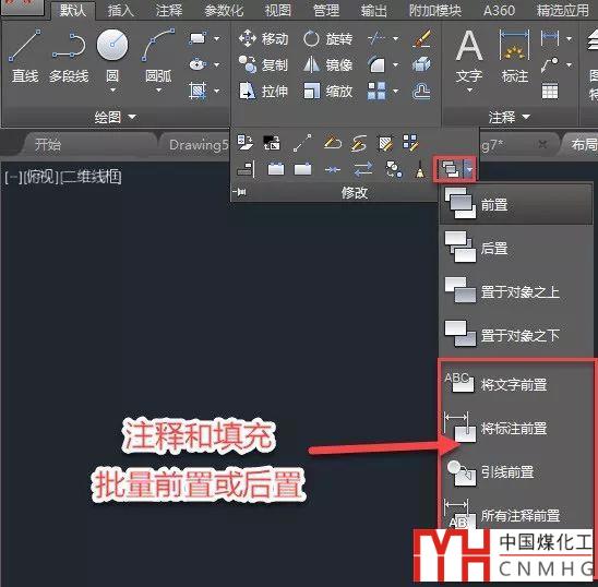 如果覺得從菜單和面板中調(diào)用麻煩,可以記命令,文字前置、標注前置、引線前置和所有注釋前置對應的命令都是TEXTTOFRONT(TEXT TO FRONT);填充后置的命令是HATCHTOBACK(HATCH TO BACK)。