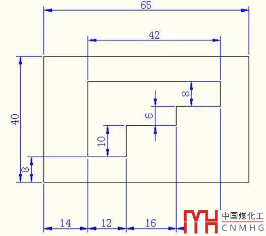 繪圖步驟:先建立兩個(gè)圖層分別是繪圖、尺寸標(biāo)注圖層;外框從兩個(gè)方向(上、右)利用正交模式畫(huà),內(nèi)框從點(diǎn)(10,6)開(kāi)始,利用正交模式和相關(guān)線段尺寸畫(huà)出;最后按照原圖進(jìn)行尺寸標(biāo)注。
