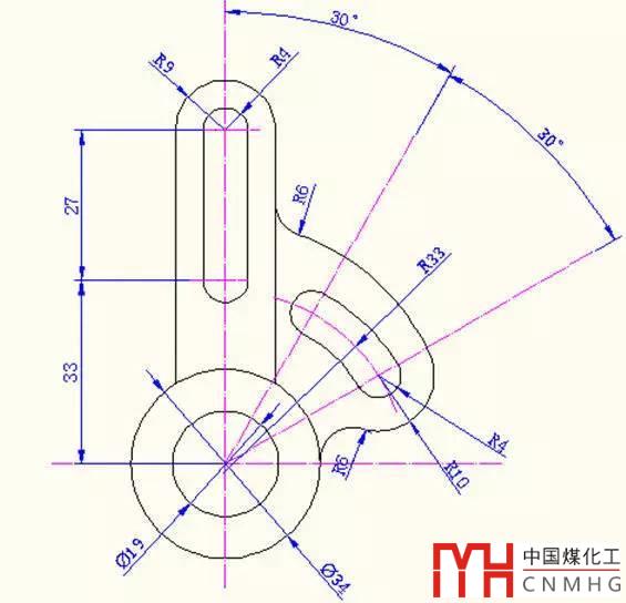 審圖:需要三個(gè)圖層,分別為繪圖、尺寸標(biāo)注、輔助線圖層圖層;本圖主要是圓的相切和多余圓弧的修剪,相關(guān)圓的輔助線、圓心、半徑的確定。
