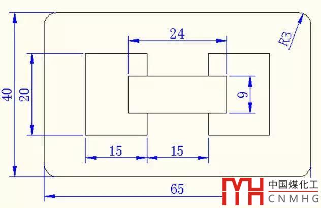 繪圖步驟:建立兩個(gè)圖層分別是繪圖、尺寸標(biāo)注圖層,使用RECTANG命令和相關(guān)坐標(biāo)繪制圓角矩形框,分別用兩點(diǎn)坐標(biāo)法畫(huà)三個(gè)矩形框,剪切多余的線段;進(jìn)行尺寸標(biāo)注。