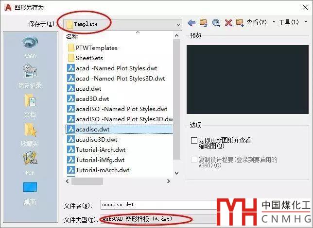 單擊另存為按鈕或按CTRL+S,打開另存為對話框,在下面的文件類型中選擇AutoCAD 圖形樣板(*.dwt),保存的目錄會自動切換到CAD的樣板文件所在的路徑,如果你不想覆蓋CAD默認(rèn)的模板文件,可以自己取個名字,比如A3-100,表示1:100的A3圖紙,你也可以直接覆蓋CAD默認(rèn)的模板文件,如圖所示。