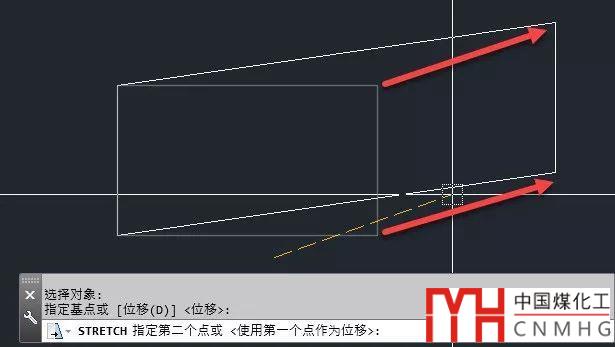 選擇完圖形或頂點(diǎn),回車(chē)確認(rèn)后,拉伸的選項(xiàng)跟移動(dòng)完全相同,也分基點(diǎn)目標(biāo)點(diǎn)和位移方式,后續(xù)的操作跟移動(dòng)一樣,可以參看之前關(guān)于移動(dòng)的介紹。