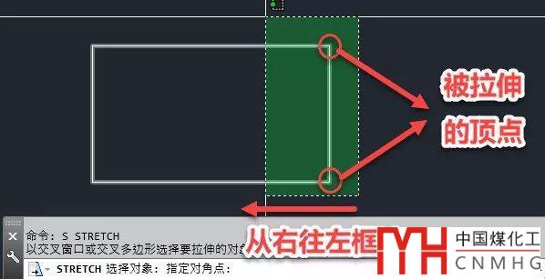選定基點(diǎn)后拉伸可以看到只有先框選的三個(gè)頂點(diǎn)移動(dòng)了,后框選的點(diǎn)沒(méi)有動(dòng)。