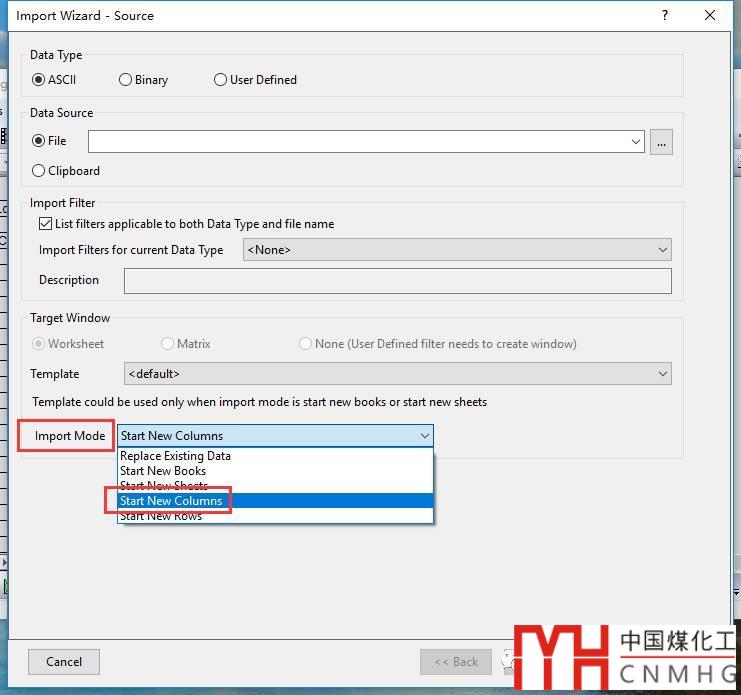 導入數(shù)據(jù)時,可以選擇Start new columns這個import mode,將同類數(shù)據(jù)導入到單個worksheet里,也便于后續(xù)的數(shù)據(jù)分析與繪圖。