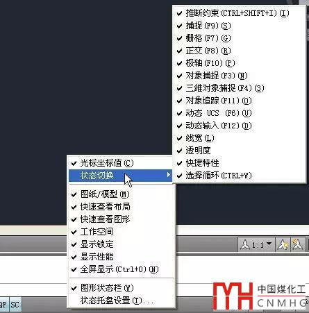 如果在狀態(tài)的空白處單擊,則可直接設置右側按鈕的顯示,同時在狀態(tài)切換二次菜單中也可以設置左側繪圖輔助工具的顯示,如下圖所示。