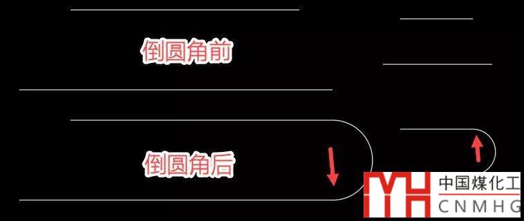 圓角功能不僅可以對交叉的線進行倒圓角,對平行線也能倒圓角,而且處理方式比較特殊:設(shè)置的圓角半徑不起作用了,會用平行線的間距作為圓角的直徑,用一個半圓將兩條平行線連接起來,如下圖所示。
