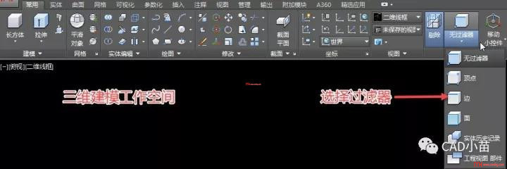 可以在多個三維功能區(qū)選項卡的“選擇”面板中找到,該過濾器指定在單擊三維對象時選定的默認(rèn)子對象。如果無過濾器處于選定狀態(tài),將選擇整個對象。