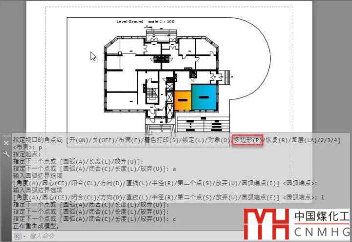 執(zhí)行MV命令后,輸入P選項(xiàng),就可以直接在布局中繪制一個(gè)多邊形的視口,繪制多邊形的參數(shù)與多段線類似,也可以繪制弧線段,最后輸入C閉合即可,如下圖所示。