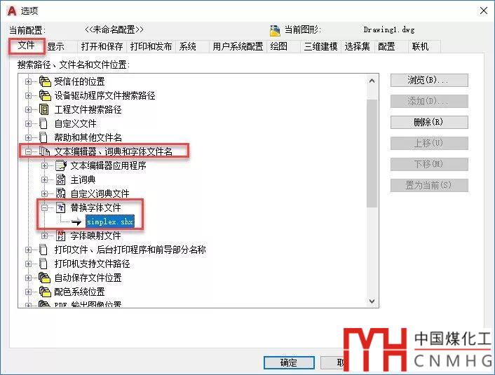 默認(rèn)的替換字體是simplex.shx,我們也可以將這個替換字體替換成我們常使用的字體,例如TXT.SHX或者tssdeng.shx。
