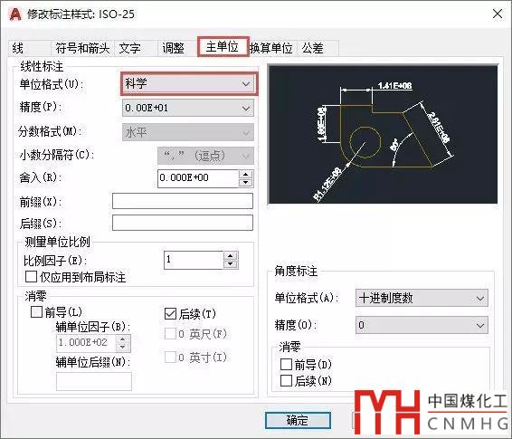 單位對話框中設(shè)置的是圖中各處顯示數(shù)值的單位,標注并不受這個單位的控制,標注默認也可以支持16位,大于1E+16后就會用科學計數(shù)法顯示,不過這樣的數(shù)值在常規(guī)繪圖中不會遇到。當然,如果需要的話在標注樣式的主單位選項卡中我們也可以直接將單位格式設(shè)置為科學計數(shù)法。