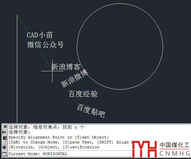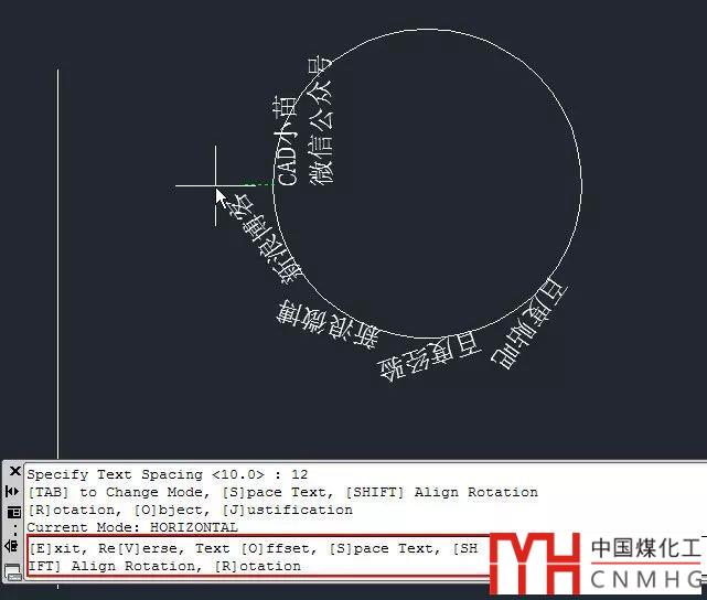 O:Object,可以進(jìn)入對(duì)象對(duì)齊模式,比如可以選擇一個(gè)圓或一條弧線,選定的文字將沿著圓或弧對(duì)齊,在對(duì)象對(duì)齊模式還可以設(shè)置反向V、偏移距離O,角度R,間距S等。