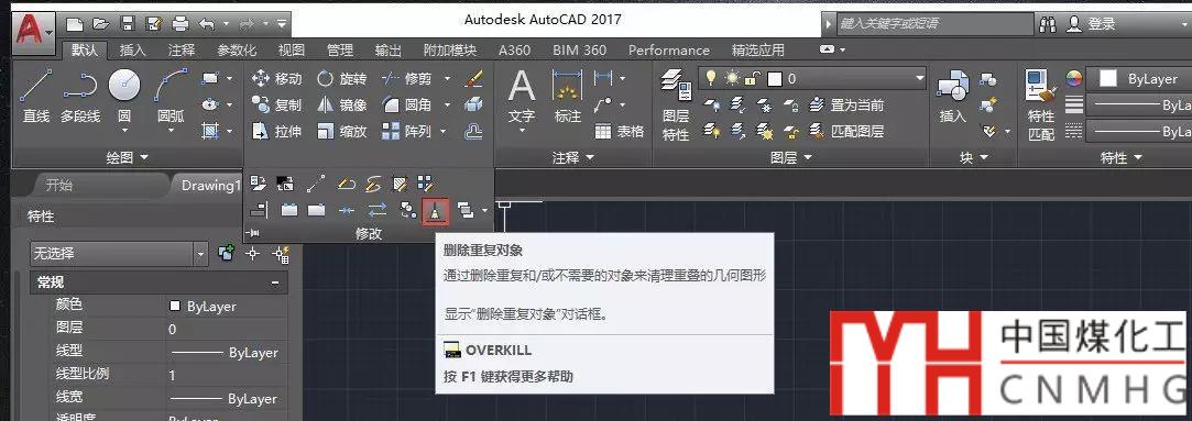 在AUTOCAD和浩辰CAD這些CAD中很早就有這樣的功能,叫消除重線或刪除重復(fù)對象,命令是OVERKILL,不知道是不是用這個功能人比較多,到了AUTOCAD高版本,這個命令反而變成了常規(guī)功能中,我們在修改菜單和面板中都能找到它,如下圖所示。