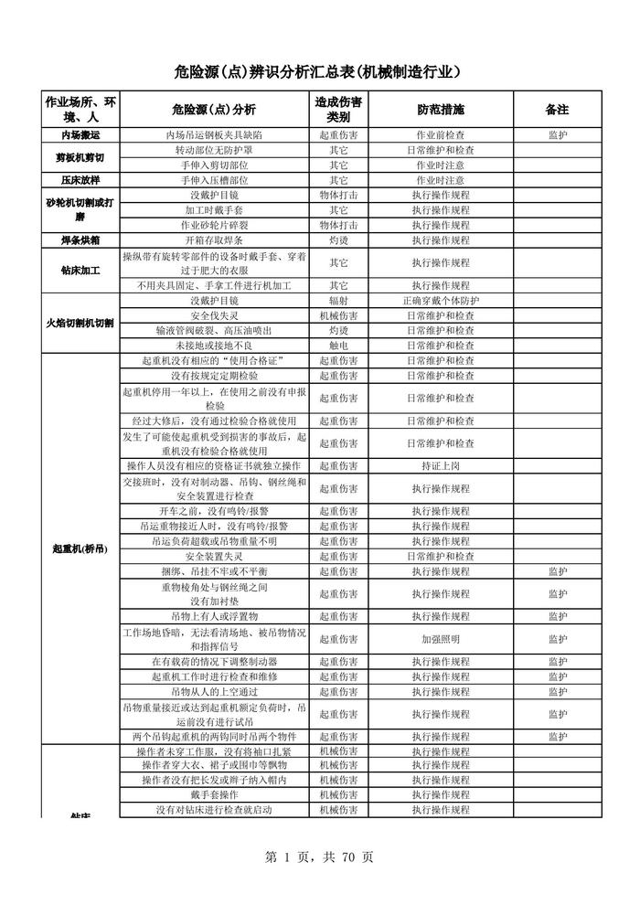 機(jī)械制造行業(yè)危險點辨識分析匯總表OHSAS18001xls
