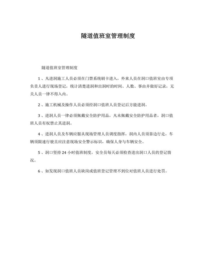 隧道值班室管理制度docx