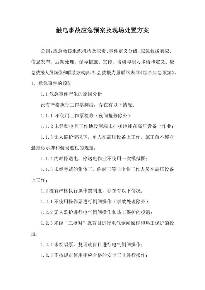 觸電事故應(yīng)急預(yù)案及現(xiàn)場處置方案(1)docx