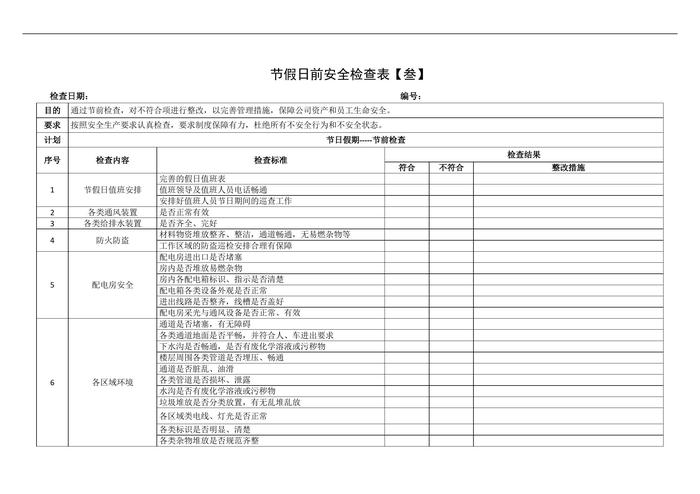E20210713~節(jié)假日前安全檢查表匯編10套doc