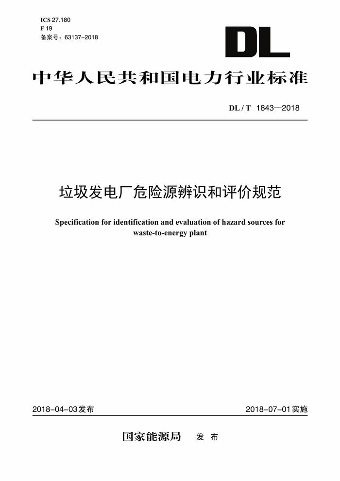 DL/T 1843-2018 垃圾發(fā)電廠危險(xiǎn)源辨識(shí)和評(píng)價(jià)規(guī)范pdf