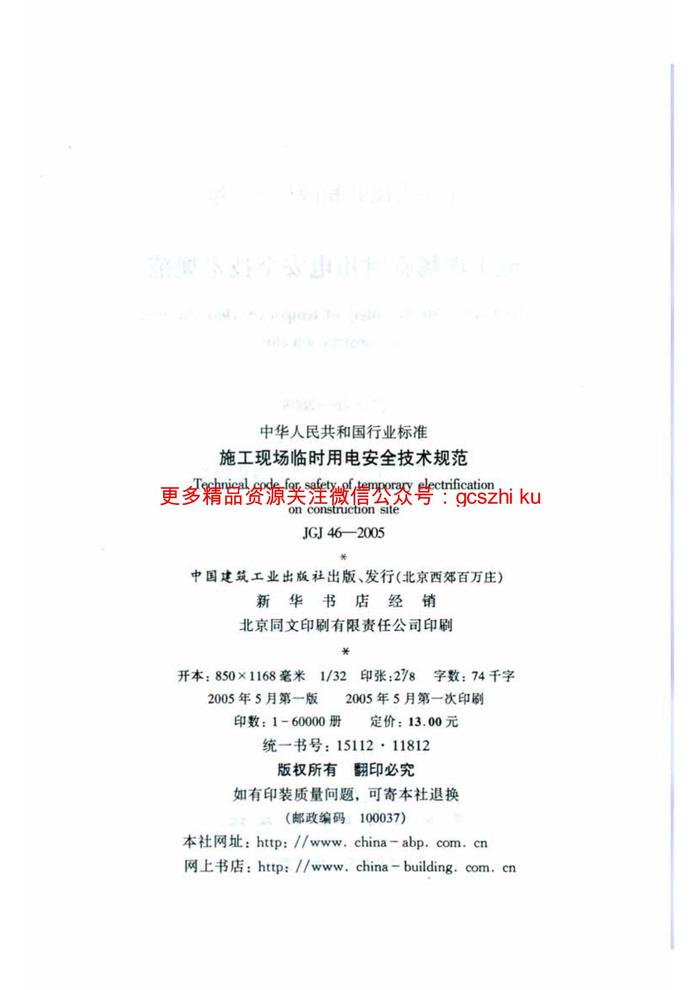 JGJ46-2005 施工現(xiàn)場(chǎng)臨時(shí)用電安全技術(shù)規(guī)范pdf