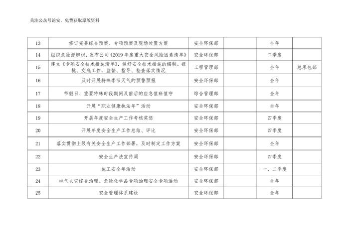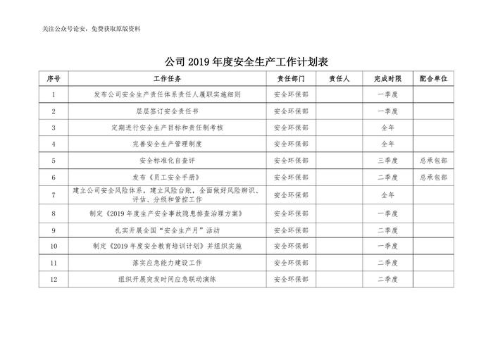 公司2022年度安全生產(chǎn)工作計劃總表(1)docx