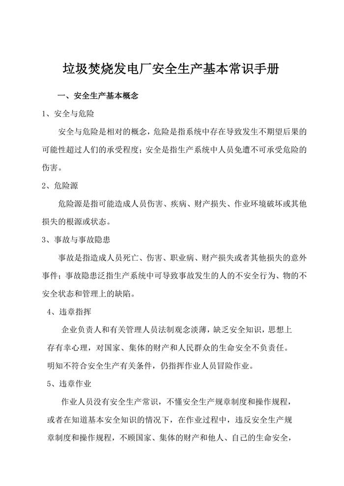 垃圾焚燒發(fā)電廠安全生產(chǎn)手冊(cè)(21頁)(1)doc