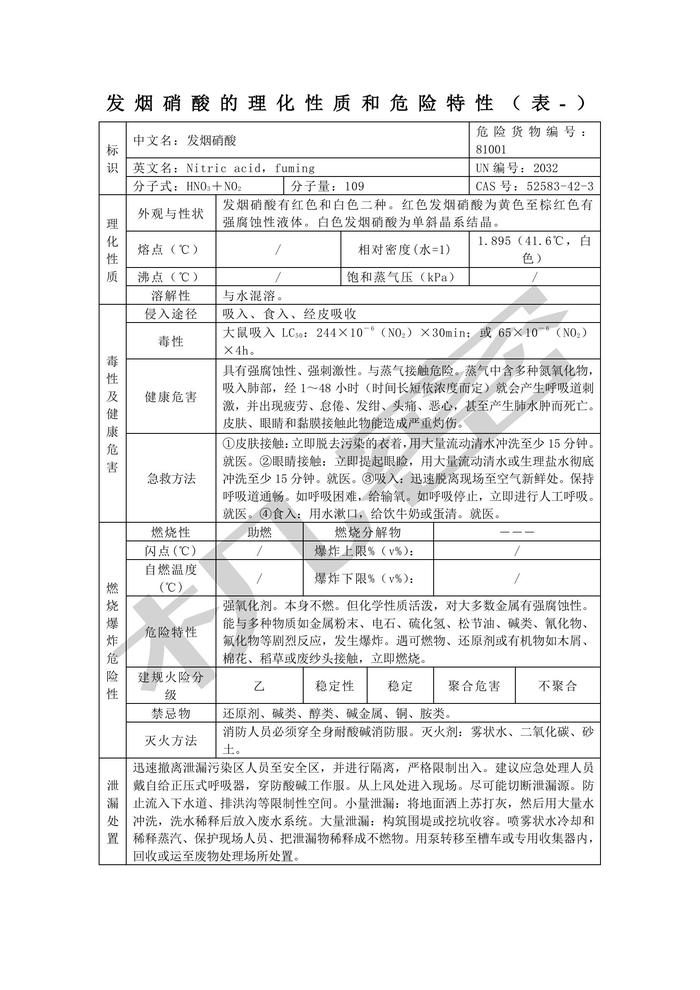 發(fā)煙硝酸的理化性質(zhì)和危險(xiǎn)特性表(1)doc