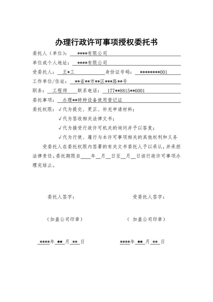 特種設(shè)備領(lǐng)取使用登記證授權(quán)委托書doc