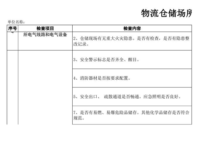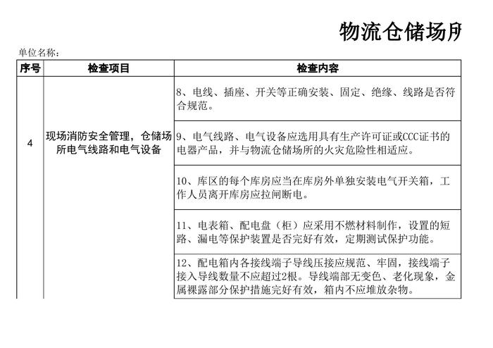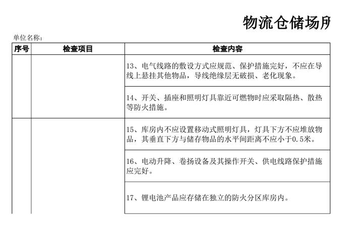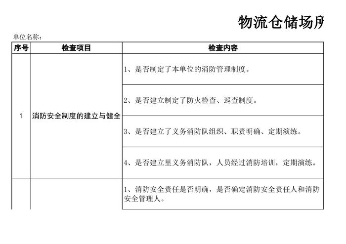 物流倉(cāng)儲(chǔ)場(chǎng)所消防安全檢查表xls