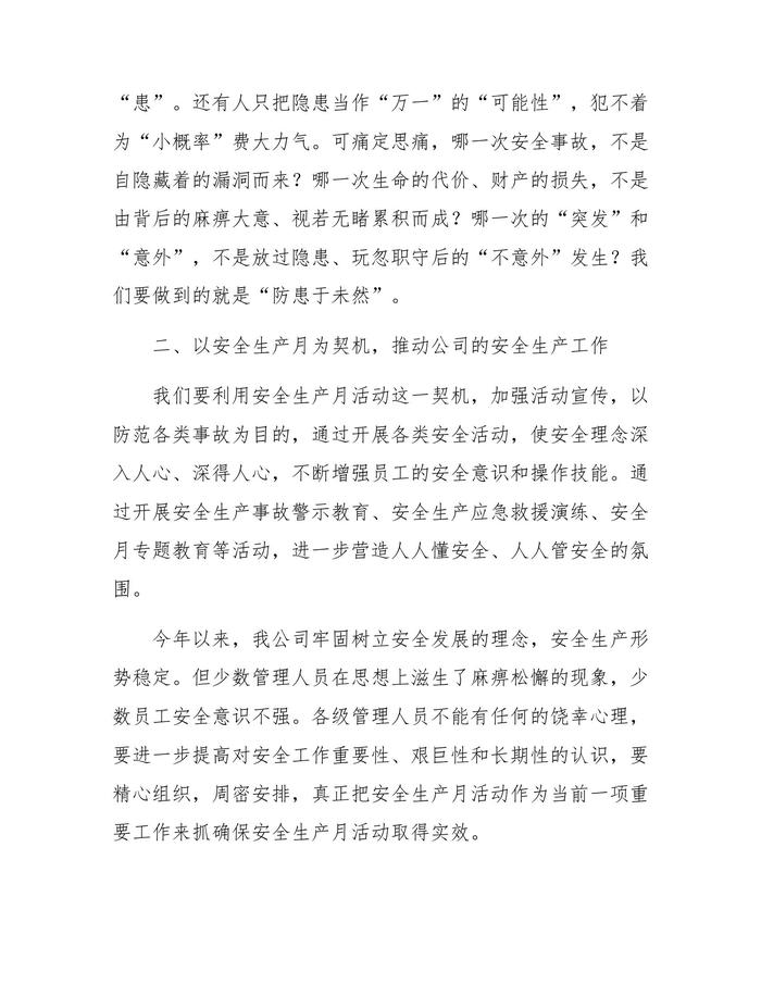 安全生產(chǎn)月啟動儀式講話稿(1)docx