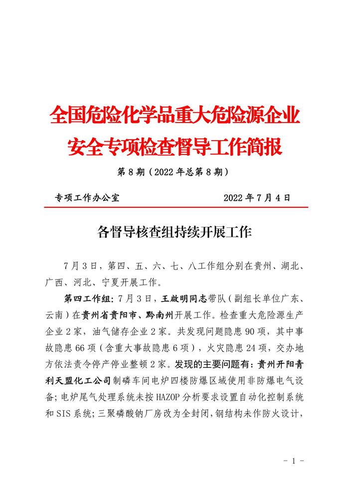 全國危險(xiǎn)化學(xué)品重大危險(xiǎn)源企業(yè)專項(xiàng)檢查督導(dǎo)工作簡報(bào)(第8期)pdf
