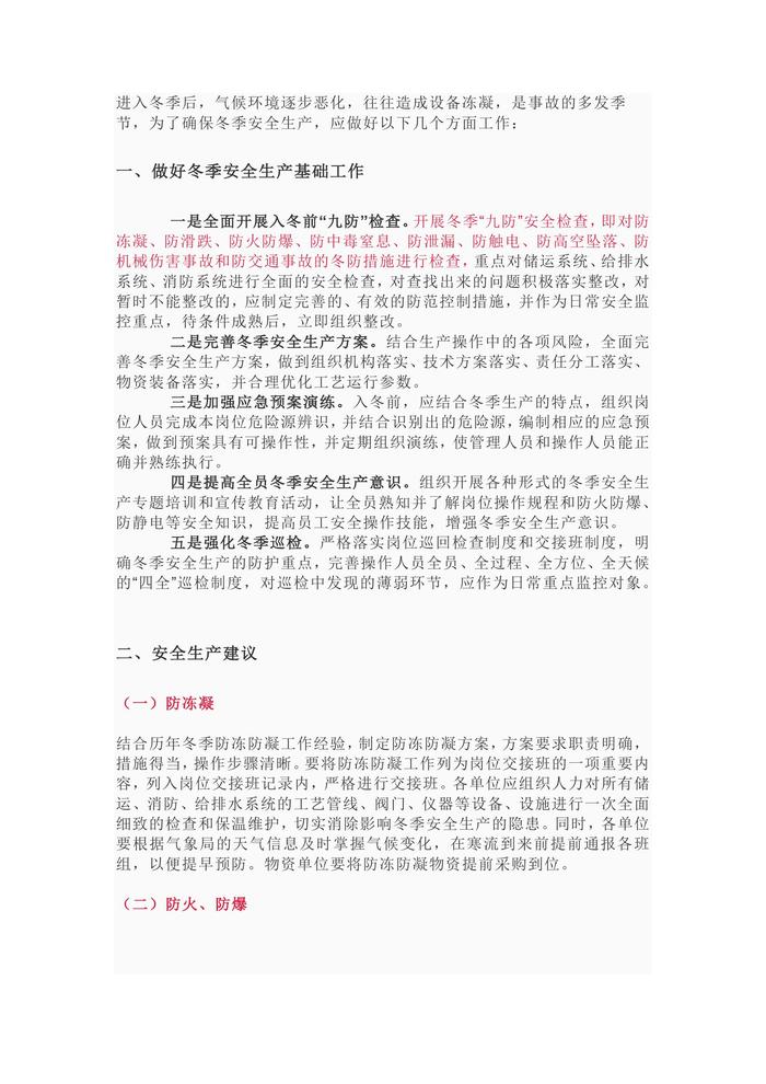 冬季安全生產(chǎn)“九防”檢查(1)docx