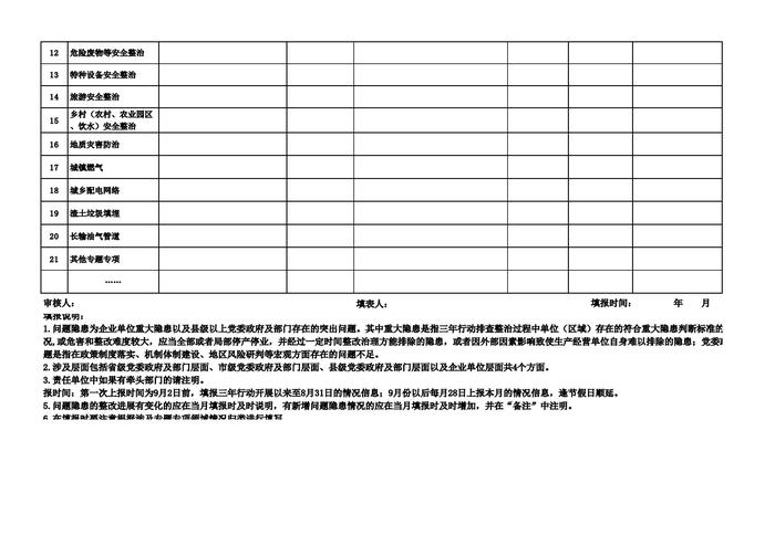 安全生產專項整治三年行動發(fā)現(xiàn)的突出問題和重大隱患清單(樣表)xls