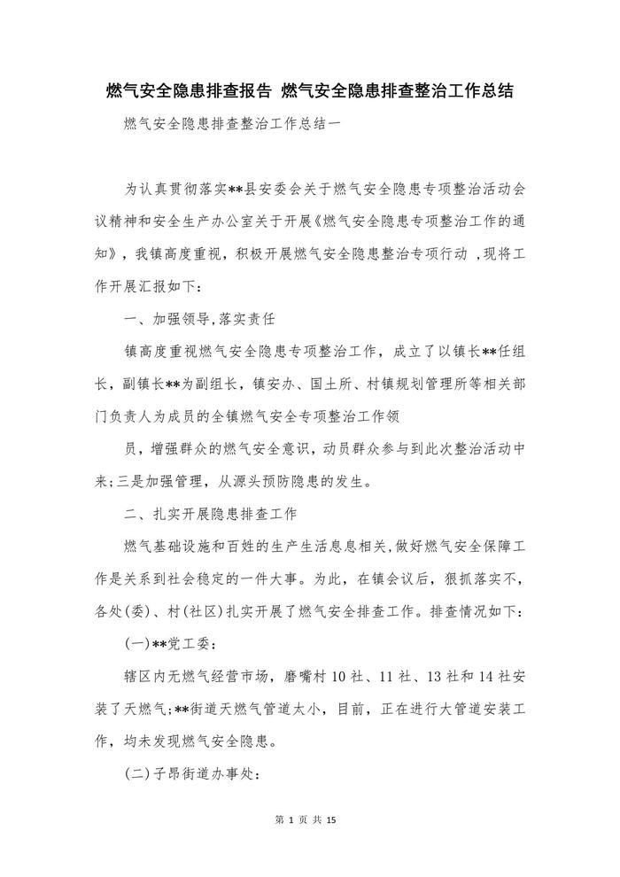 燃氣安全隱患排查工作總結(jié)報告doc