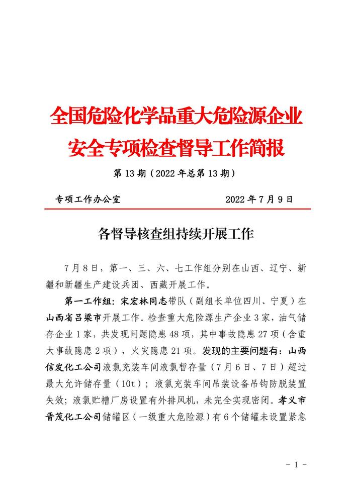 全國危險化學品重大危險源企業(yè)專項檢查督導工作簡報(第13期)pdf