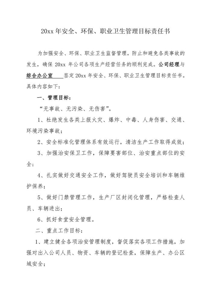 公司各部門安全管理目標(biāo)責(zé)任書(30頁)doc