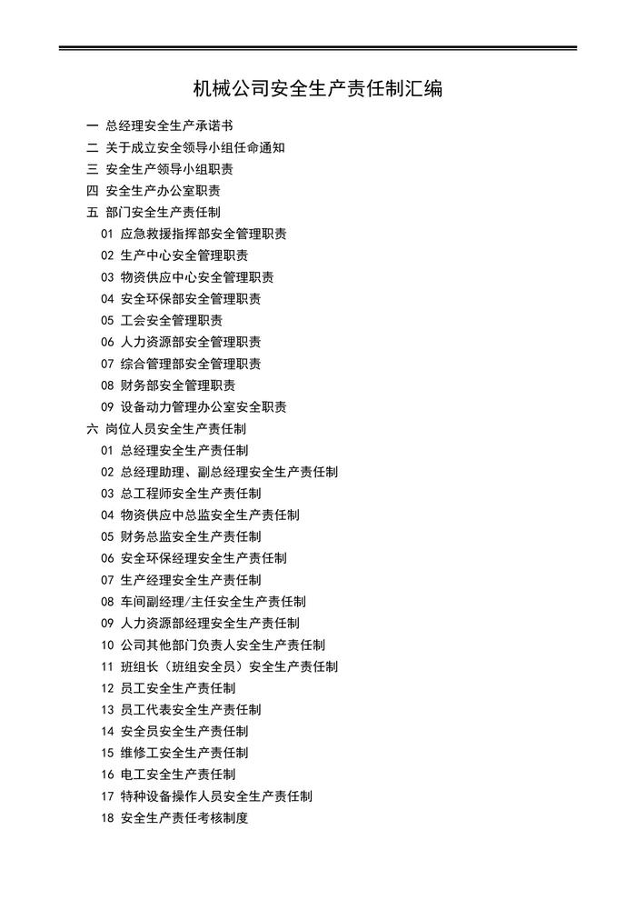 機械公司安全生產(chǎn)責(zé)任制匯編docx