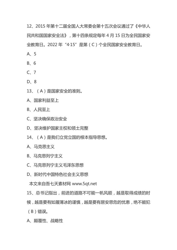 大眾日?qǐng)?bào)2022國家安全知識(shí)競(jìng)賽題庫匯編docx