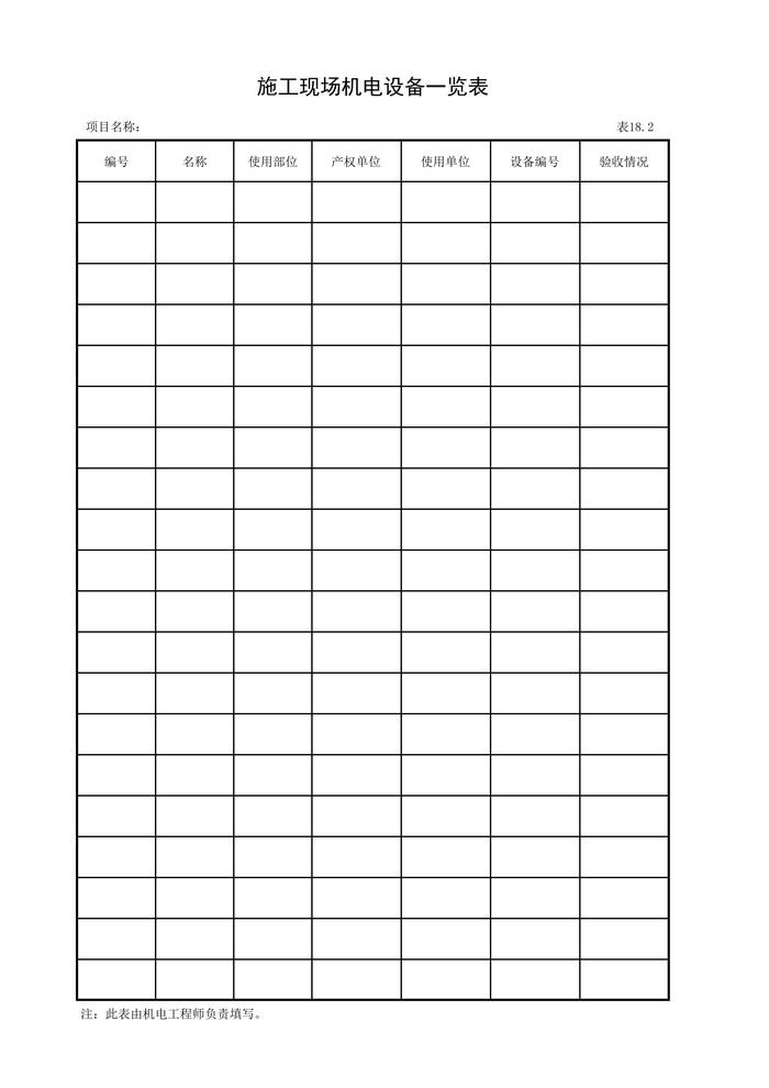 施工現(xiàn)場機電設備一覽表xls