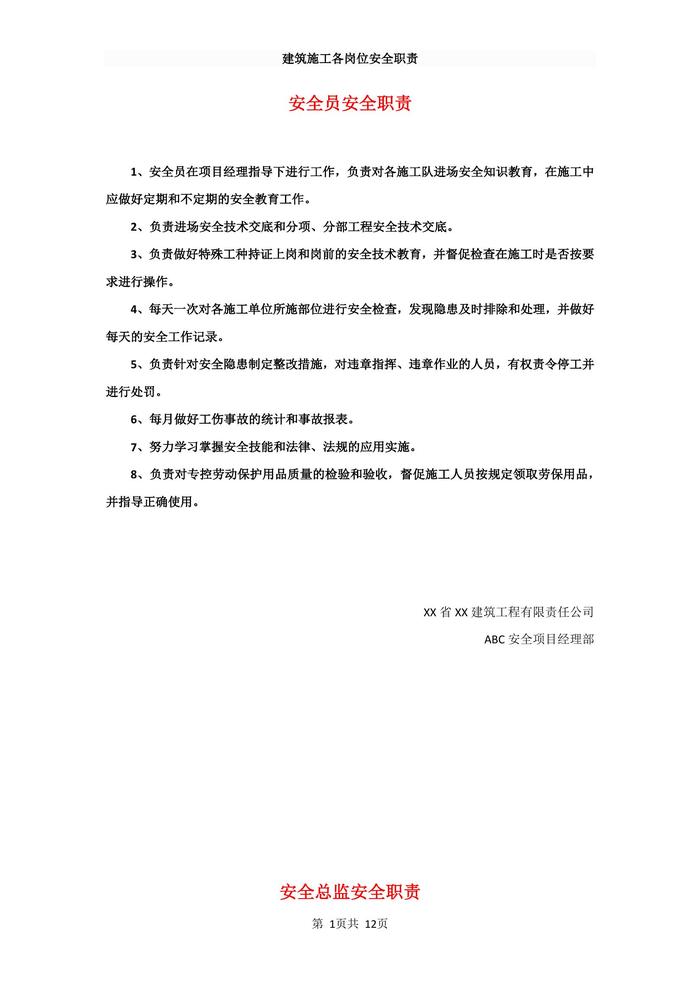 建筑施工各崗位安全職責(zé)docx