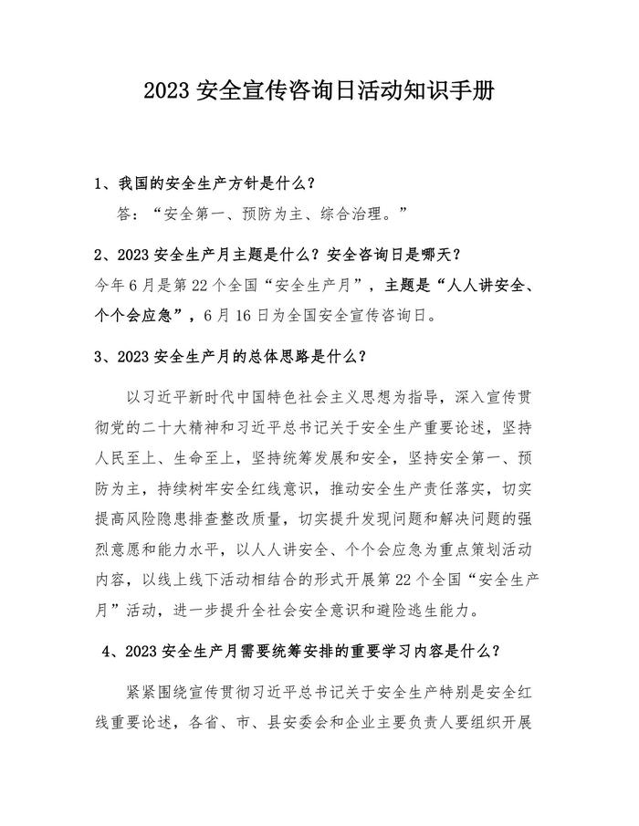 2023安全宣傳咨詢?nèi)栈顒又R手冊(11頁)docx