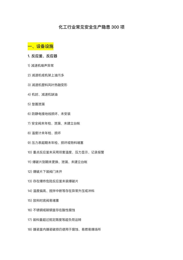 化工企業(yè)日常安全隱患300項(xiàng)doc