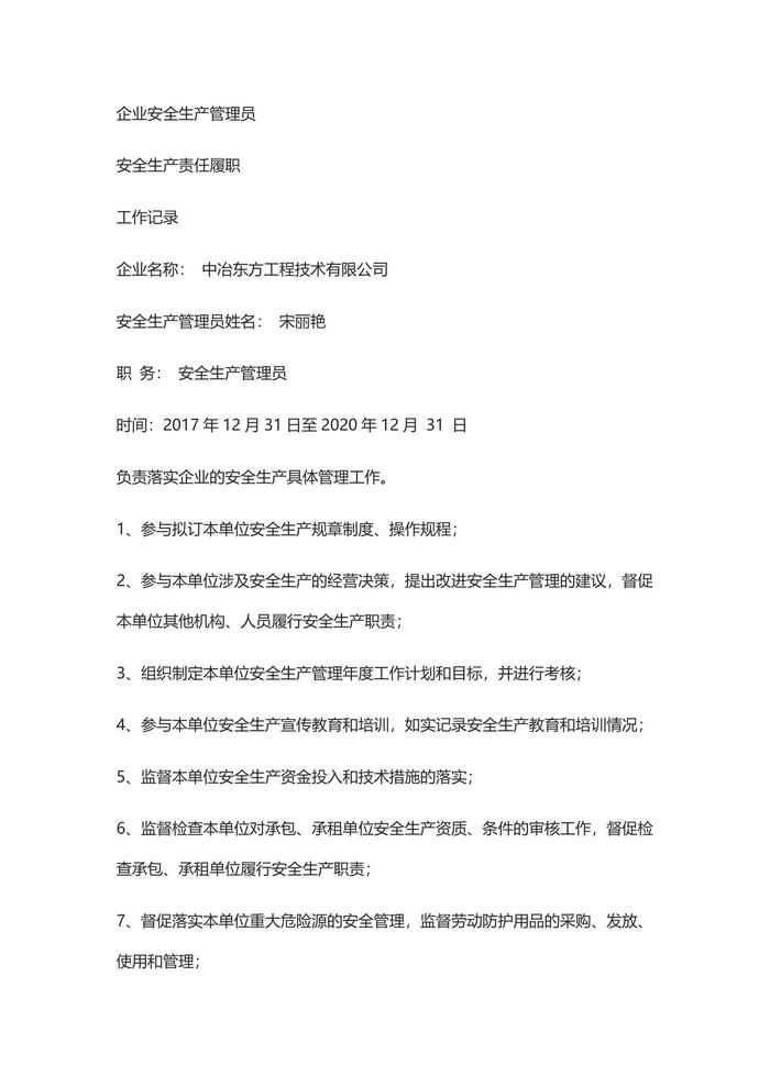 企業(yè)安全生產(chǎn)管理員履職陳述docx