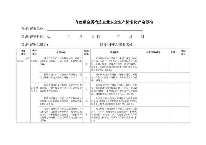 有色重金屬冶煉有色金屬壓力加工企業(yè)安全標(biāo)準(zhǔn)化考評doc