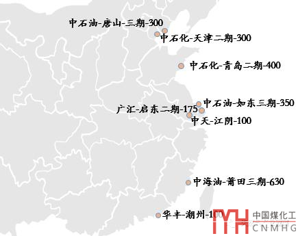 中國(guó)已投產(chǎn)21座接收站(圖3),共計(jì)接卸能力已達(dá)9035萬(wàn)噸/年(1265億方/年),其中有5座接收站屬于非三桶油主導(dǎo)(新奧、廣匯、深燃、九豐、申能),接受能力為875萬(wàn)噸、占9.7%。計(jì)劃新建或者擴(kuò)建8座LNG接收站,粗略統(tǒng)計(jì)這些新增的接卸能力就達(dá)到2355萬(wàn)噸/年,全部投運(yùn)后中國(guó)LNG接收站接卸能力超億噸,達(dá)到11390萬(wàn)噸/年(合1595億方/年)。