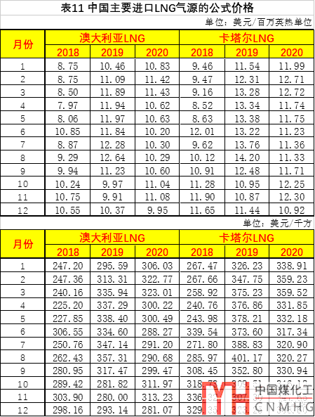 我國(guó)進(jìn)口LNG中長(zhǎng)協(xié)合同價(jià)格主要掛鉤日本一攬子原油到岸價(jià)格(JCC),其中僅有3個(gè)中長(zhǎng)協(xié)合同采用S曲線定價(jià),其余合同均采用直線定價(jià),且大部分不含重談條款。澳大利亞LNG直線型中長(zhǎng)協(xié)掛鉤系數(shù)為14%,常數(shù)為1.2美元/百萬(wàn)英熱單位;卡塔爾LNG直線型中長(zhǎng)協(xié)掛鉤系數(shù)為17%,常數(shù)為0.3美元/百萬(wàn)英熱單位。油價(jià)為L(zhǎng)NG中長(zhǎng)協(xié)核心變量。由于澳大利亞、卡塔爾的中長(zhǎng)協(xié)合同占比近70%,這兩國(guó)LNG中長(zhǎng)協(xié)價(jià)格基本決定了我國(guó)LNG中長(zhǎng)協(xié)價(jià)格。表11為按公式測(cè)算的LNG離岸價(jià)格。按長(zhǎng)協(xié)價(jià)格,我國(guó)目前進(jìn)口的LNG到岸價(jià)格應(yīng)該在350美元/千方即2500元/千方的水平,加上增值稅、LNG終端費(fèi)用和氣化費(fèi)用,平均終端出口接近3000元/千方,目前最貴的門(mén)站價(jià)格也就是2050元/千方。因此,進(jìn)口LNG在成本上仍然難以與進(jìn)口管道氣進(jìn)行競(jìng)爭(zhēng)。[!--empirenews.page--]