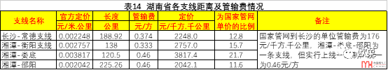 在配氣費(fèi)用中,省內(nèi)支線單位管輸費(fèi)非常高,表14為湖南省各支線距離及管輸費(fèi)情況。湖南共建有三條支線管道(長(zhǎng)沙-常德、湘潭-衡陽(yáng)、湘潭-婁底-邵陽(yáng))總計(jì)552.2公里,平均單位管輸費(fèi)用為2113.4元/千方.千公里,為西氣東輸管線至長(zhǎng)沙單位管輸費(fèi)用176元/千方.千公里的12倍。支線管道每公里造價(jià)為干線管網(wǎng)造價(jià)1/4至1/6,但由于這種管道的管數(shù)量小,所以分?jǐn)偟矫糠綌?shù)量上的成本是要高一些,但為主干管線費(fèi)用的12倍,這種支線定價(jià)太瘋狂!