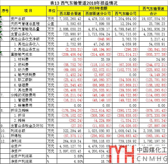 按國(guó)家關(guān)于主干管網(wǎng)核定管輸運(yùn)輸價(jià)格的規(guī)定,準(zhǔn)許收益率按管道負(fù)荷率不低于75%、稅后全投資收益率8%的原則確定。中亞進(jìn)口天然氣全部由西氣東輸管線(二線和三線),但到中衛(wèi)后,有些也經(jīng)過(guò)原來(lái)西氣東輸一線的西區(qū)東輸公司輸配氣。表13資料來(lái)源于中石油網(wǎng)站管網(wǎng)信息公開(kāi)部分。