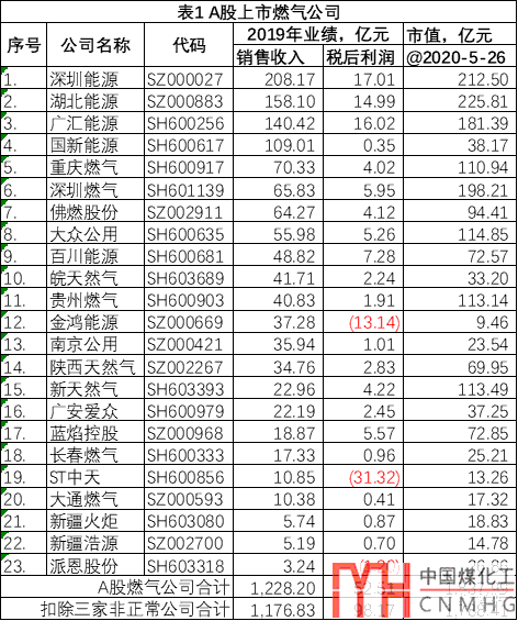 另一方面是,天然氣下游企業(yè)主要是燃?xì)馄髽I(yè),卻是個(gè)個(gè)賺的盆滿缽滿。據(jù)不完全統(tǒng)計(jì),54家大型燃?xì)夤?,其?9家上市燃?xì)夤荆ɑ蛑鳡I(yíng)業(yè)務(wù)中包含燃?xì)鈽I(yè)務(wù)的公司)和15家非上市燃?xì)夤?,涵蓋了中國(guó)城鎮(zhèn)燃?xì)夂凸ど虡I(yè)燃?xì)夤?yīng)的90%以上,供氣量(管道氣)的95%以上。39家上市公司中,23家在A股上市,16家港股上市。