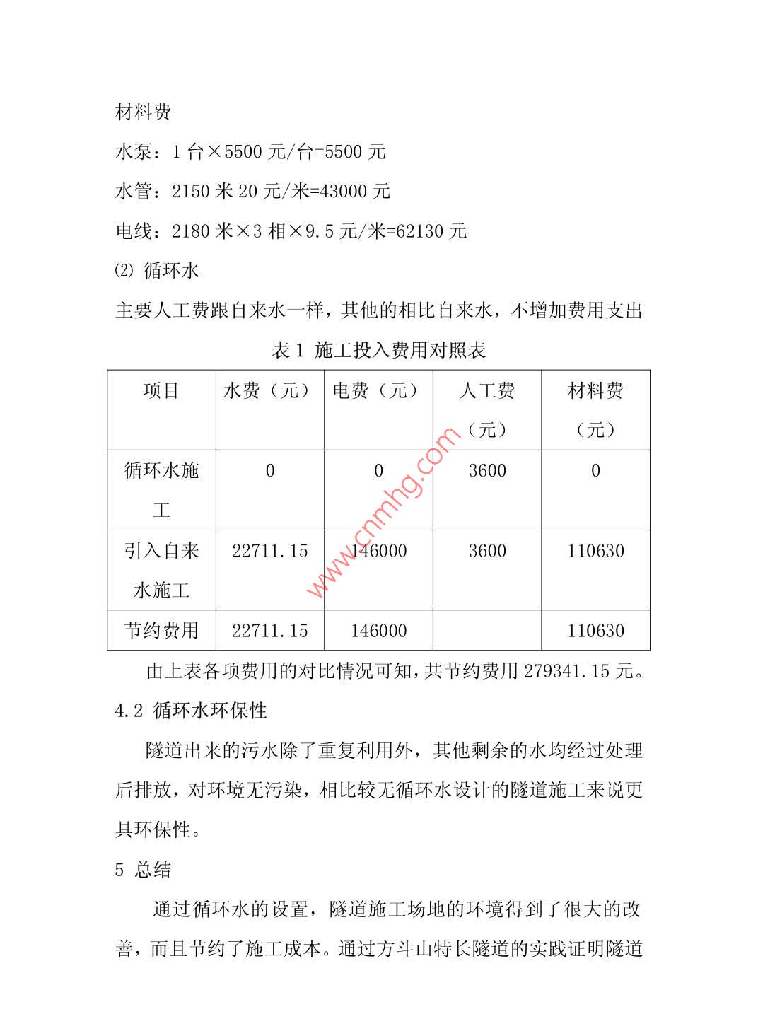 隧道施工循環(huán)水設(shè)計(jì)薛明英韓曉芳中交路橋華北工程有限公司北京摘要:為了保持洞內(nèi)施工場地的干燥,確保洞內(nèi)工人施工以及機(jī)械施工的安全,合理利用隧道開挖過程中遇到水,節(jié)約施工成本。關(guān)鍵詞:隧道循環(huán)水設(shè)計(jì)中圖分類號(hào):U45文獻(xiàn)標(biāo)識(shí)碼:A1工程概況方斗山特長隧道設(shè)計(jì)為分離式隧道,左線長7285m,右線長7310m。隧道穿越的方斗山背斜構(gòu)造,區(qū)域性斷裂構(gòu)造—一橫梁子斷裂帶(F1)及次級斷層發(fā)育、分布規(guī)律,巖溶發(fā)育規(guī)律及水文地質(zhì)特征等。方斗山隧道隧址區(qū)地質(zhì)構(gòu)造復(fù)雜、巖溶發(fā)育、地下水豐富,屬水文地質(zhì)條件復(fù)雜的隊(duì)址。預(yù)計(jì)平水期隧道涌水量124180m3/d,雨季最大涌水量宜按五倍計(jì),為620900m3/d,屬涌水量特大隧道。隧址區(qū)地下水對砼無結(jié)晶類、分解類、結(jié)晶分解復(fù)合類腐蝕性。2建設(shè)循環(huán)水設(shè)施的必要性在隧道工程施工過程中,水起到很重要的作用。需要水的方面很多,包括鑿巖機(jī)用水、噴霧灑水用水、襯砌用水、導(dǎo)管注漿用水等。從施工工藝上來簡述以上幾個(gè)環(huán)節(jié)中水的重要性。隧道開挖:爆破開挖是現(xiàn)代隊(duì)道開挖中很重要的開挖方式。爆破開挖需要用風(fēng)槍進(jìn)行鉆孔施工,風(fēng)槍鉆孔施工的原理為高壓氣體帶動(dòng)鉆頭在巖體內(nèi)鉆進(jìn)。在風(fēng)槍鉆頭鉆進(jìn)的過程中,鉆頭由于與巖體的摩擦而不斷的生熱,同時(shí)巖體較濕潤的話,鉆頭容易工作。為了風(fēng)槍鉆頭能夠降溫及更方便鉆頭鉆進(jìn),用水來降溫及潤滑鉆頭。洞內(nèi)除塵及降溫:隧道掌子面鉆孔結(jié)束后,開始進(jìn)行爆破工作,爆破后會(huì)在隧道內(nèi)出現(xiàn)大量的灰塵及有毒氣體。這些灰塵除了通過通風(fēng)設(shè)施予以排除外,還需要用水幕法予以除塵,同時(shí)部分氮氧化物也會(huì)隨之溶解在水中。隨著隧道深度的不斷加深,洞內(nèi)溫度有所上升,在洞內(nèi)噴水降溫,確保泂內(nèi)溫度不超過規(guī)范施工溫度,為工人提供舒適的工作環(huán)境。噴射混凝土:隧道開挖講究早封閉,隧道岀渣完畢后,緊接著進(jìn)行初期支護(hù)。其中的噴射混凝土的施工工藝分為干噴、潮噴、濕噴,無論是哪種施工工藝,都需要水的配合,只是用水量和加水部位不同而已?;炷涟韬?、運(yùn)輸及澆筑:二次襯砌為澆筑混凝土。混凝土的拌合離不開水。隧道襯砌混凝土的澆筑一般是泵送混凝土澆筑施工,要求拌合的混凝土具有較好的和易性。其中用水量是決定混凝土拌和物流動(dòng)性的主要因素。分布在水泥漿中的水量,決定了拌和物的流動(dòng)性。拌和物中,水泥漿應(yīng)填充骨料顆粒的空隙,并在骨料顆粒表面形成潤滑層以降低摩擦,由此可見,為了獲得要求的流動(dòng)性,必須有足夠的水泥漿,必須提供必要的施工用水。綜上所述,隊(duì)道施工過程中,需要大量的施工用水。但是由于方斗山隧道出口地處的特殊位置,地表附近沒有永久水源,水資源特別的寶貴,隧道出口端原先采用自來水施工,由于距離遠(yuǎn),水量小等原因,不僅影響施工進(jìn)度,而且增加了施工成本。3循環(huán)水的設(shè)計(jì)方案3.1隧道排、用水分析方斗山特長隧道出口段在開挖過程中,掌子面遇到地下水的水量比較大。為了確保工程按進(jìn)度計(jì)劃要求施工,保證工程質(zhì)量、工人施工安全以及機(jī)械工作安全,我們對地下水采取以防、截排、堵相結(jié)合的綜合治理原則予以處理。在隧道排水的方案中重點(diǎn)強(qiáng)調(diào)對水的合理利用。掌子面匯集水仰拱匯集水其它匯集水洞口沉沙井沉淀池儲(chǔ)水池洞口沉沙井拌合站用水其它用水圖1循環(huán)水設(shè)置結(jié)構(gòu)圖3.2水量計(jì)算隧道內(nèi)出現(xiàn)的地下水,經(jīng)過化驗(yàn),水質(zhì)達(dá)到了施工要求,能夠直接用于施工。并且通過實(shí)際檢測,左洞地下水流量為每小時(shí)5.52立方,右洞地下水流量為每小時(shí)5.36立方。經(jīng)測算施工用水量為:鑿巖機(jī)用水量Q諧=0.3噸/時(shí)·臺(tái)×2小時(shí)×16臺(tái)×2×2=38.4噸噴霧灑水用水量Q水=0.03噸/分·臺(tái)×30分×2臺(tái)=1.8噸襯砌用水Q神=0.19噸/方·米×12米×11.91方×2=5431噸Q噴=0.139噸/方·米×3米×6.91×2=5.76噸Q=0.185噸/方·米×12米×5.26方×2=23.35噸施工最大用水量Q用=Q鑿十Q水十Q襯十Q噴論十Q拱=38.4噸+1.8噸+54.31噸+5.76噸+23.35噸=123.26噸施工用水總量Qa=Q鑿×L/n+Q噴水×t+Q×L/12+Q噴×L/n十Q拱×L/12=38.4×3000/3+1.8×365×2+54.31×3000/12+5.76×3000/3+23.35×3000/1264889噸注:1、L:單洞按照3公里估算2、n每循環(huán)掘進(jìn)按照3米估算3、t工作時(shí)間按照2年估算隧道進(jìn)口水量統(tǒng)計(jì)左洞每小時(shí)為3.52立方,右洞每小時(shí)為3.36立方總計(jì)水量Q澗=24時(shí)×(5.52+5.36)方/時(shí)=261.12噸Q用<故洞內(nèi)的地下水能夠滿足施工用水的要求,可以建設(shè)循環(huán)水設(shè)施3.3循環(huán)水系統(tǒng)設(shè)計(jì)洞內(nèi)排水主要靠施工防排水設(shè)施,施工防排水設(shè)施與結(jié)構(gòu)物防排水工程相結(jié)合,不僅能改善施工中的勞動(dòng)條件,保證施工安全和質(zhì)量,加快施工進(jìn)度,節(jié)省工程投資,還能防止運(yùn)營中