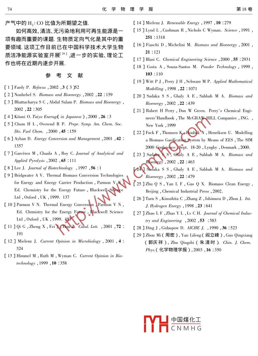 生物質(zhì)定向氣化制合成氣-氣化熱力學(xué)模型與模擬